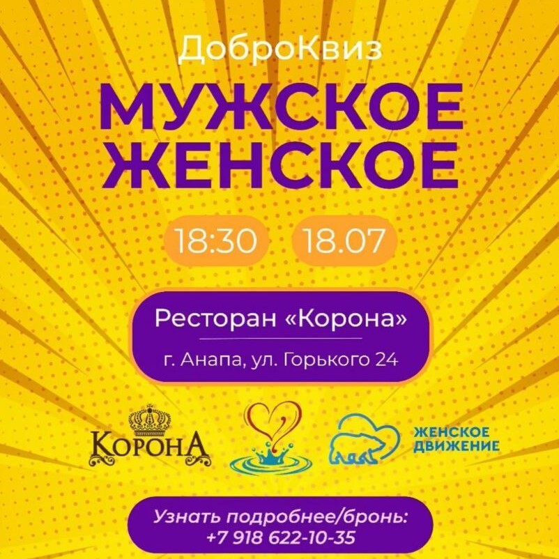 18 июля в 18:30 ❤️ в ресторане «Корона» (ул. Горького, 3) состоится увлекательный благотворительный – ДоброКвиз!